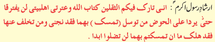 is my Progeny (Itrat, Ahlebait). These two will never separate from each